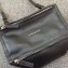 Goatskin leather Givenchy Pandora satchel with silver-tone hardware, optional flat shoulder strap, single rolled shoulder strap, dual zip pockets at exterior; black canvas lining, three pockets at interior wall; one with zip closure and zip closure at top.