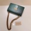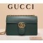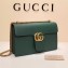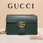 size:28*16*8 cm The medium GG Marmont chain shoulder bag has a structured shape and oversized flap closure completed with our Double G hardware. The sliding chain strap can be worn multiple ways, changing between a shoulder and a top handle bag. Made in our shiny leather with an intense appearance, the firm compact feel of this leather is ideal for structured bags. Double G On mould construction Internal zip pocket and internal partition Two exterior gussets Sliding chain strap can be worn as a shoulder strap with 14.5" drop or can be worn as a top handle with 12" drop Flap closure Medium Cotton linen lining Made in Italy Antique gold toned hardware