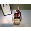 Our Sylvie bag in a mini structured shape with a chain shoulder strap and grosgrain web bow. The nylon web is embedded under the leather and decorated with a gold toned chain and buckle. Made in our smooth, classic leather.